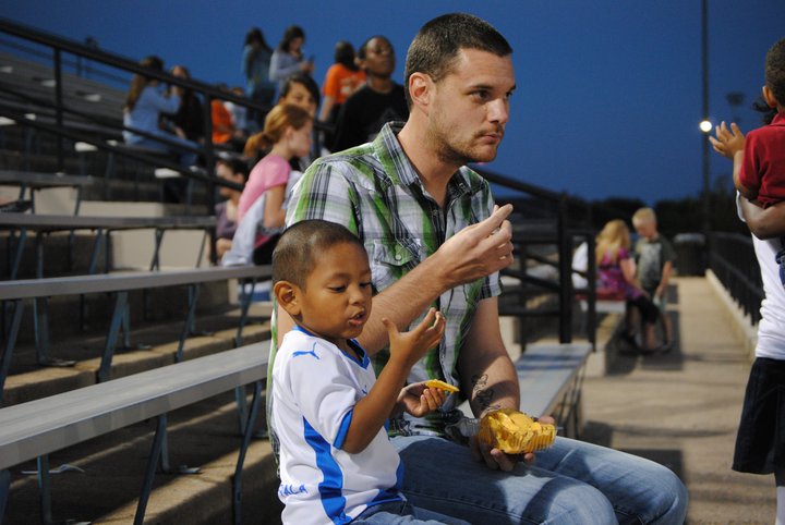 Another "first" shared event was attending a Cooper football game with Daddy. David enjoyed being called "cute" by all the girls as well as eating his first game nachos in the stands.